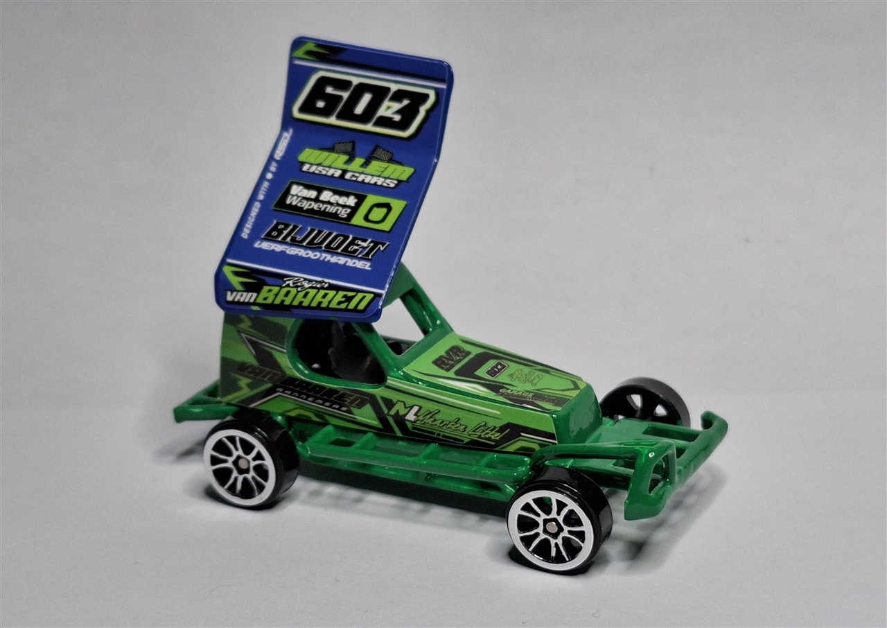 Mini model stockcar van # 603 Rogier van Baaren Schaal 1 : 62 made in China geproduceerd door Edcreations uit Engeland Belettering door RSD Kinderen spelen er uuren soms dagen lang mee, ook leuk om te verzamelen. niet geschikt voor kinderen on de de 3 jaar.