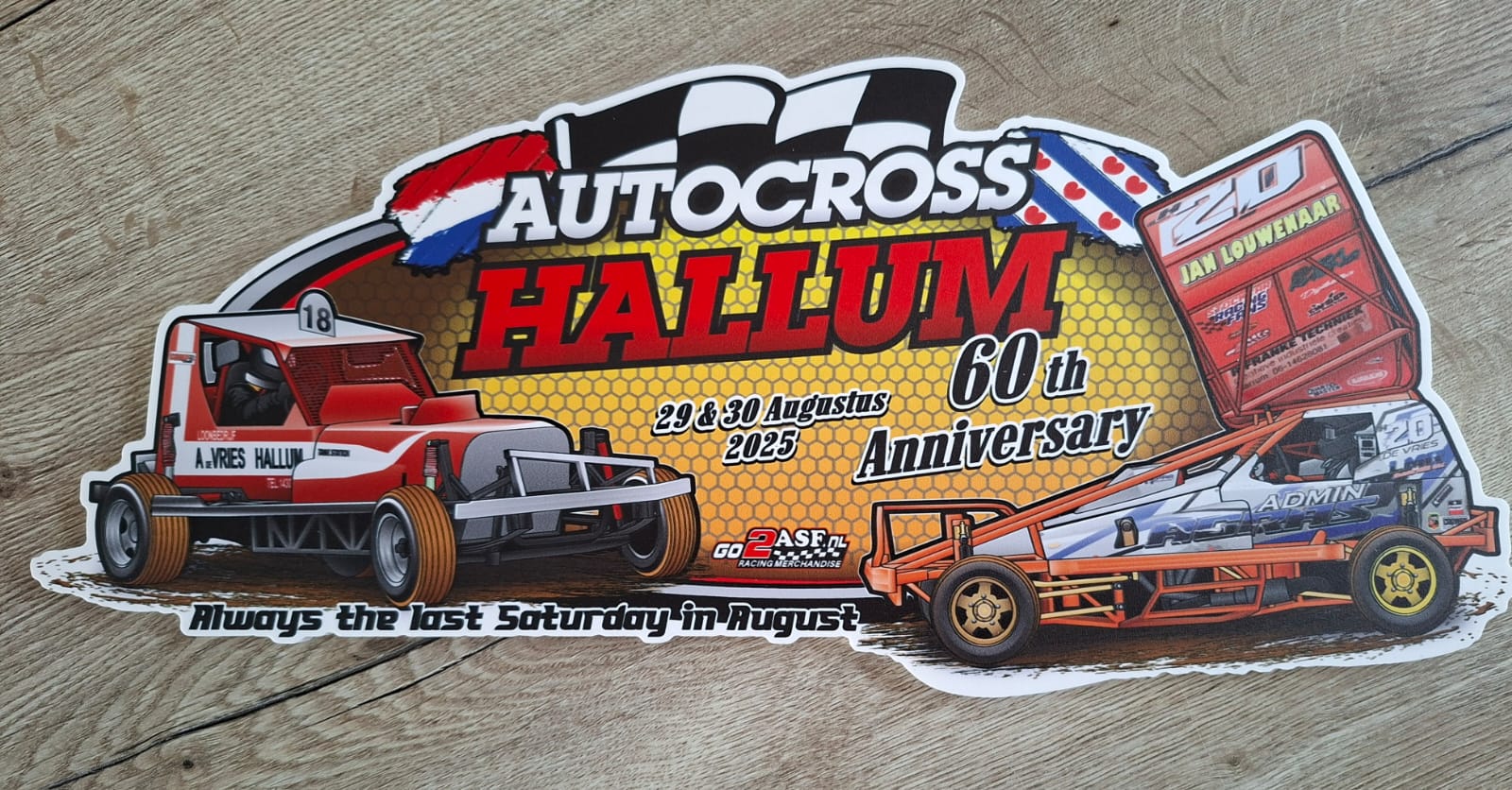 Bordje van 60e autocross in Hallum 1 cm dik 50 cm breed en 22 cm hoog licht gewicht kunstof Leuk voor de kinderkamer of mancafe, werkplaats noem het maar op op te hangen door gaatje boren ?of dubbelzijdig tape