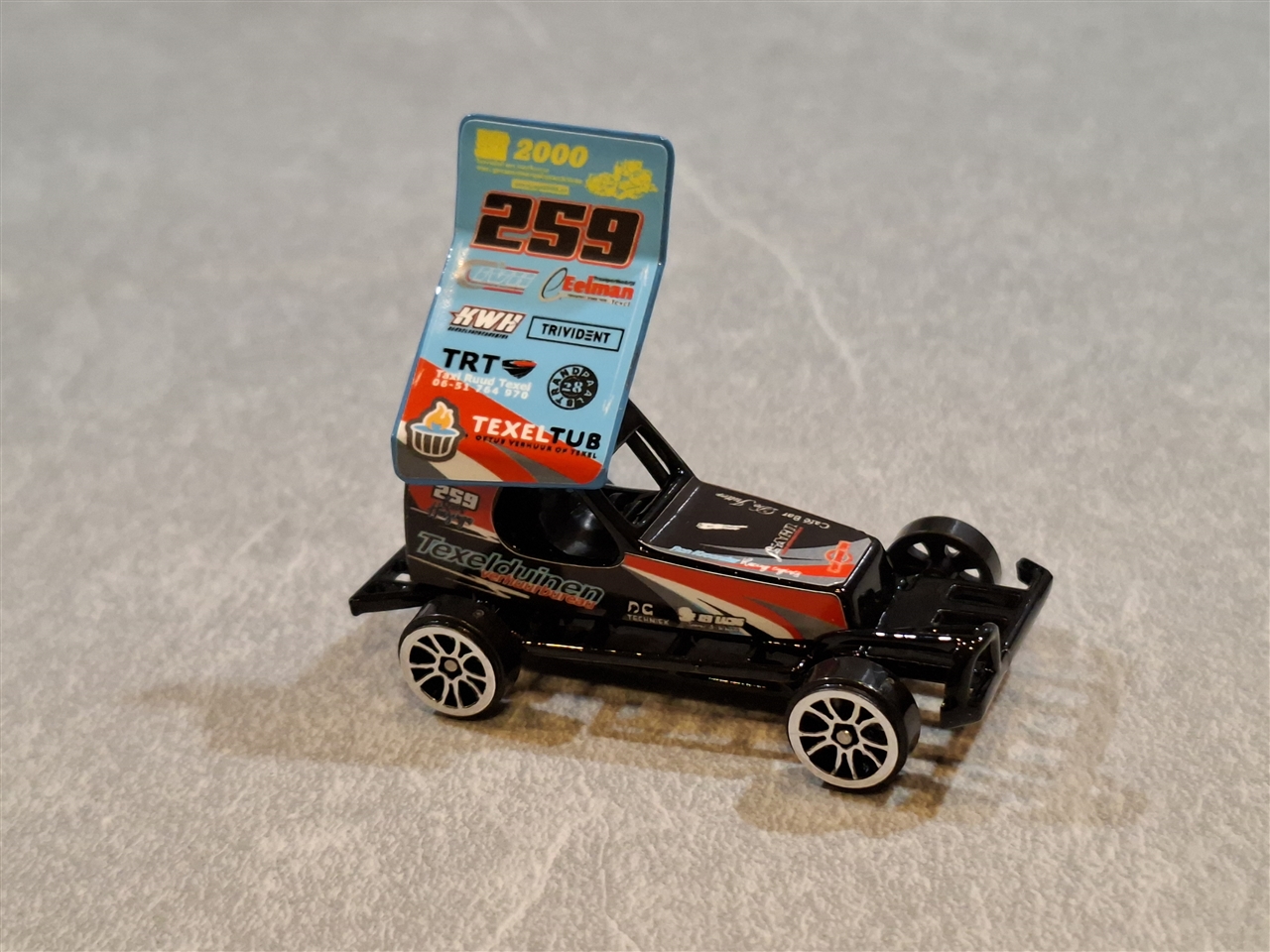 Mini model stockcar van # 259 Kevin Huizinga Schaal 1 : 62 made in China geproduceerd .door Edcreations uit Engeland Belettering door Printservice Texel Kinderen spelen er uuren soms dagen lang mee, ook leuk om te verzamelen. niet geschikt voor kinderen on de de 3 jaar