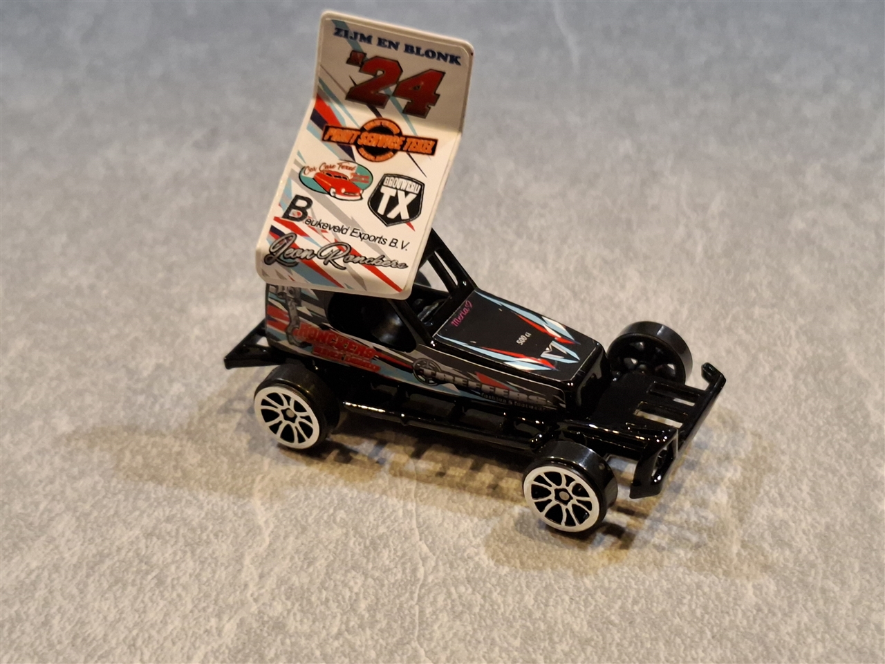 Mini model stockcar van # 24 Leon Ronckers Schaal 1 : 62 made in China geproduceerd .door Edcreations uit Engeland Belettering door Spiveron Kinderen spelen er uuren soms dagen lang mee, ook leuk om te verzamelen. niet geschikt voor kinderen on de de 3 jaar