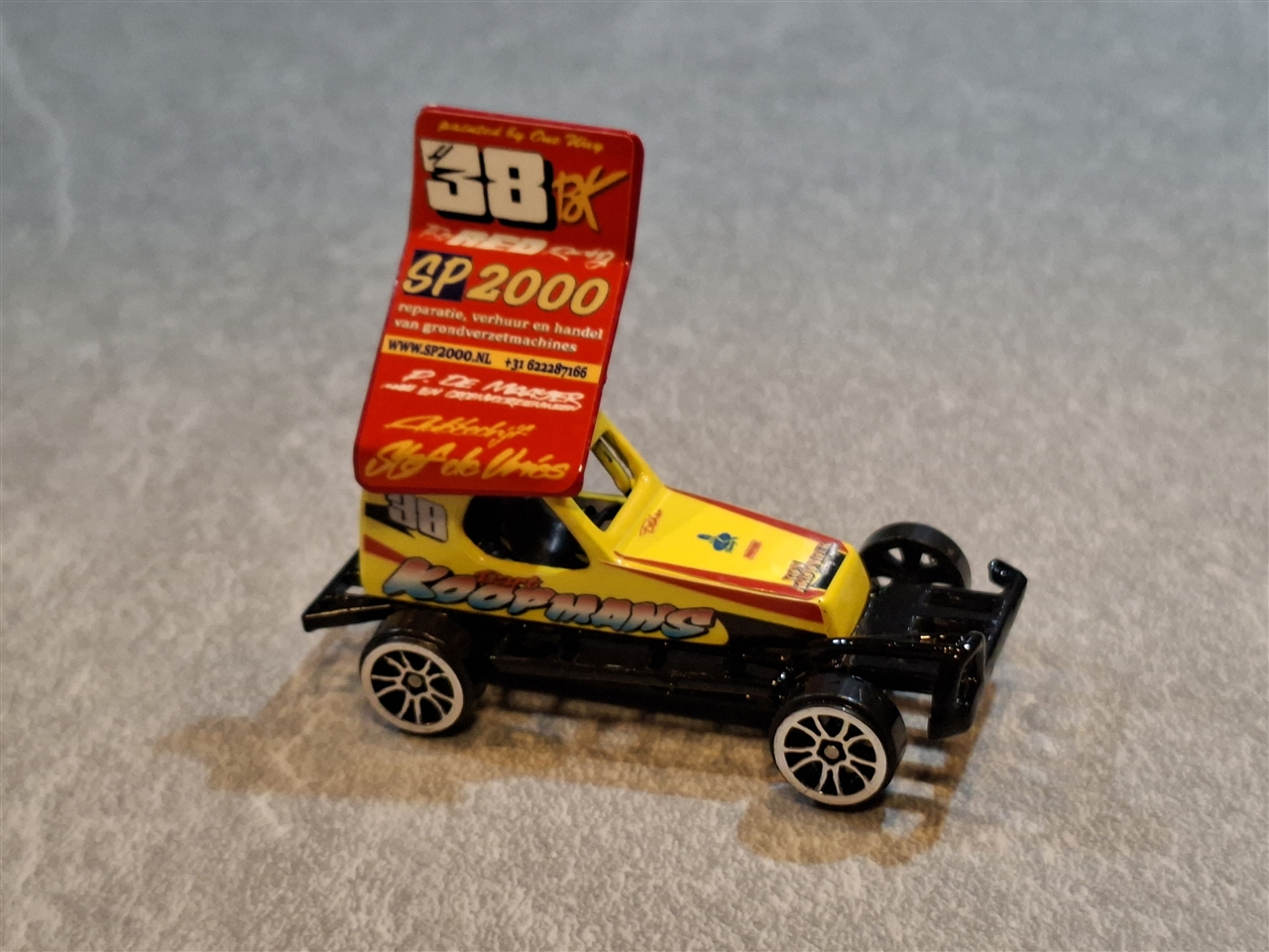 Mini model stockcar van # 38 Bart Koopmans Schaal 1 : 62 made in China geproduceerd door Edcreations uit Engeland Belettering door JW signs Kinderen spelen er uuren soms dagen lang mee, ook leuk om te verzamelen. niet geschikt voor kinderen onder de 3 jaar.