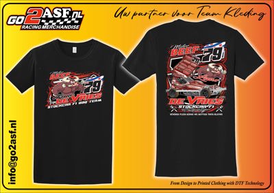 Naast onze eigen T shirts en Hoodies voor evenementen als de Kings Battle van Blauwhuis- het Speedweekend op Texel en de World Cup in Venray. Maken wij met behulp van onze nieuwe teken computer ook team kleding ontwerpen voor race teams op aanvraag. Hier onder diverse voorbeelden, wij bedrukken de kleding met DTF transfers. Door onze samenwerking met de grootste DTF leverancier van Europa kunnen wij de kleding aanbieden tegen een prijs waar ook u blij van word en daardoor tegen een gunstige prijs door kan verkopen. Wij noemen dit met trots de win, win situatie voor beide partijen. meer info stuur ons een mailtje : info@go2asf.nl Stockcar F2 : Nick Groenendaal : Hoodies - T shirts (klik op de foto) Junior Klasse : Wesley Douwes : T shirts - Hoodies - Polo's - Sweaters (klik op de foto) FAC 1600 klasse : Wendy van der Veen : Hoodies - T shirts - jassen (klik op de foto) Stockcar F1 Johan Beimers : Hoodies - T shirts - polo's - jassen (klik op de foto) Hallum 60e autocross : T shirts - Hoodies - caps Stockcar F1 Roy Peetoom : Hoodies - T shirts (klik op de foto) Rodeo klasse Sybe van der Wal (klik op de foto) Stockcar F1 : Janbauke van kalsbeek :T-shirts - Hoodies - Polo's - Jassen (klik op de foto) Stockcar F1 : Tea Helder : T shirts - Hoodies (klik op de foto) Stockcar F1 : Richard Falkena Silverroof : T shirts - Hoodies - Overalls - Polo's - jassen (klik op de foto) Stockcar F1 : Pieter van der Iest : T shirts - Hoodies (klik op de foto) Stockcar F1 : Louw de Vries : T shirts - Hoodies - Polo's(klik op de foto) Stockcar F1 : Bert de Vries : T shirts - Hoodies - Polo's - Jassen - caps - vlag (klik op de foto) Stockcar F1 ; Arjen de Wilde : T shirts - Hoodies - polo's Stockcar F1 Richard Falkena : T shirts - Hoodies - Jassen (klik op de foto) Stockcar F2 Jelle Louwsma - T shirts - Hoodies (klik op de foto) Saloon Stockcar : Hein Durk Vellema : Hoodies - T shirts - dames hemdjes Circuit service : Sjouke van Kammen : T shirts - Hoodies (klik op de foto) FAC 1600 : Nathalie Wesselius : T shirts - Hoodies (klik op de foto) Rodeo : Sybe van der Wal : T shirts - Hoodies (klik op de foto) Rodeo : Mike van der Brink : T shirts - Hoodies (klik op de foto) Stockcar F2 : Sybo Wiersma : T shirts - Hoodies (klik op de foto) Stockcar F1 : Wendy Koomans : T shirts - Hoodies (klik op de foto) Stockcar F2 Kevin en Jarno van der Wal : T shirts - Hoodies (klik op de foto)